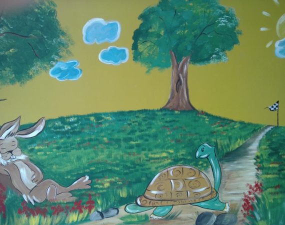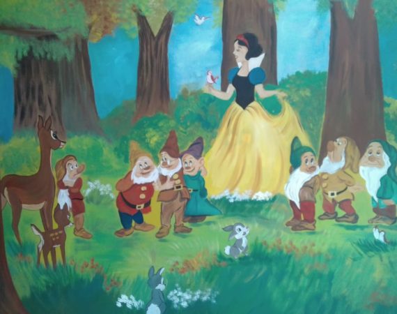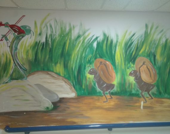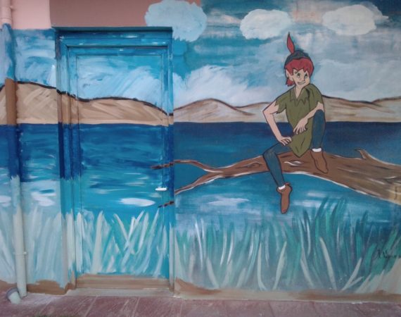 ” Τα παιδιά ζωγραφίζουν στον τοίχο, μία Καρδιά και έναν Ήλιο στην μέση.